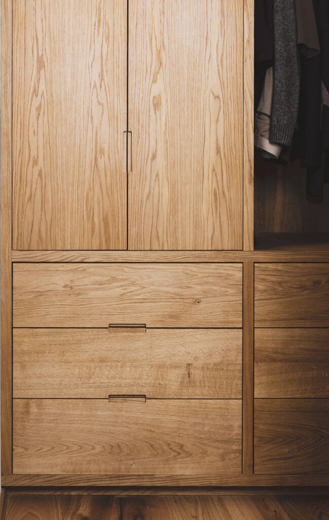 Hos Bjerregaard Snedkeri forstår vi, at hver familie er unik med deres egne behov og præferencer, især når det kommer til opbevaring af tøj. Vores håndlavede snedkermøbler af dansk træ tilbyder skræddersyede garderobeløsninger til soveværelser, walk-in closets, entréer, børneværelser, bryggers og endda sommerhuse. Uanset hvor behovet opstår, stræber vi efter at skabe funktionelle og æstetisk tiltalende løsninger, der passer perfekt til den enkelte families livsstil og rummets dimensioner.