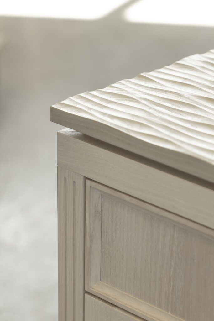 Møblet er designet med henblik på at imødekomme brugeren gennem gode danske materialer, taktilitet og naturlig overfladebehandling. Det indbyder til brug og berøring. Den bølgede overflade på dele af møblet er inspireret af de små krusninger på vandet, der opstår på en stille dag ved stranden og har en dragende effekt. Man må gerne røre.